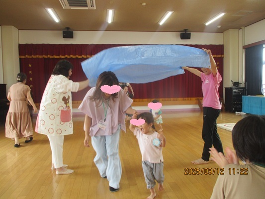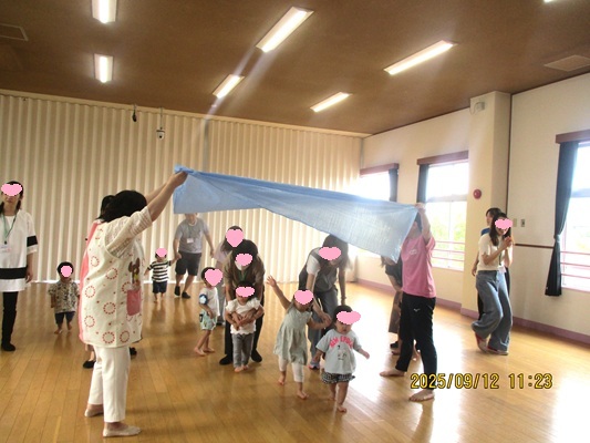 10月10日(金)に行います。その日は、バスタオルを使った遊びをする予定です。皆様のご参加をお待ちしています。